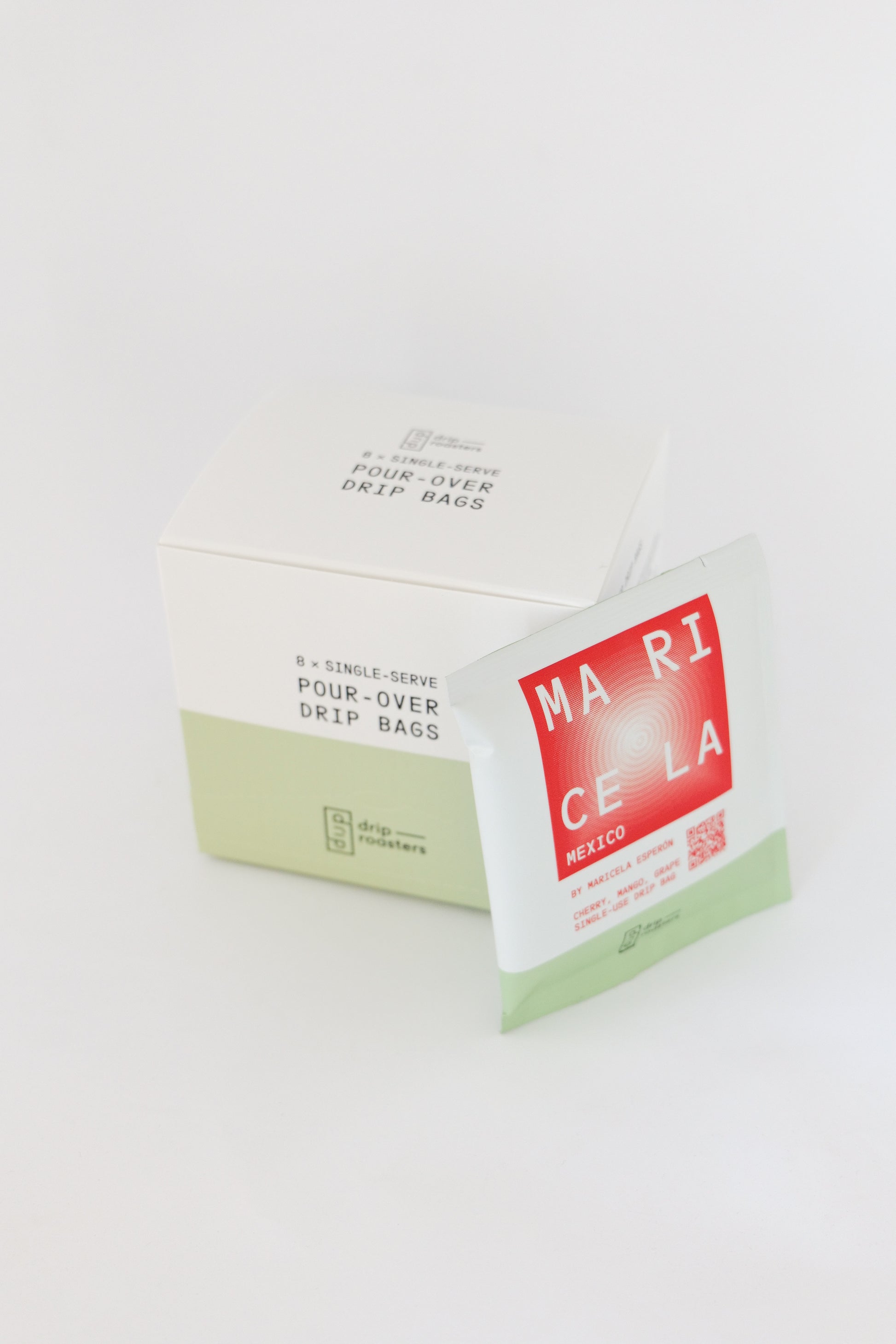Jeder Drip Bag enthält 12g Mexico Maricela – ein nachhaltig angebauter, hell gerösteter Natural aus der Sierra Mazateca in Oaxaca. Süss wie reife Früchte, dabei clean und saftig: Kirsche, Mango, rote Beeren, Traube. Angebaut und verarbeitet von Maricela Esperón auf ihrer Farm El Sótano, wo der Kaffee eine ausgedehnte Fermentation durchläuft und anschliessend bis zu 45 Tage auf Hochbeeten trocknet.