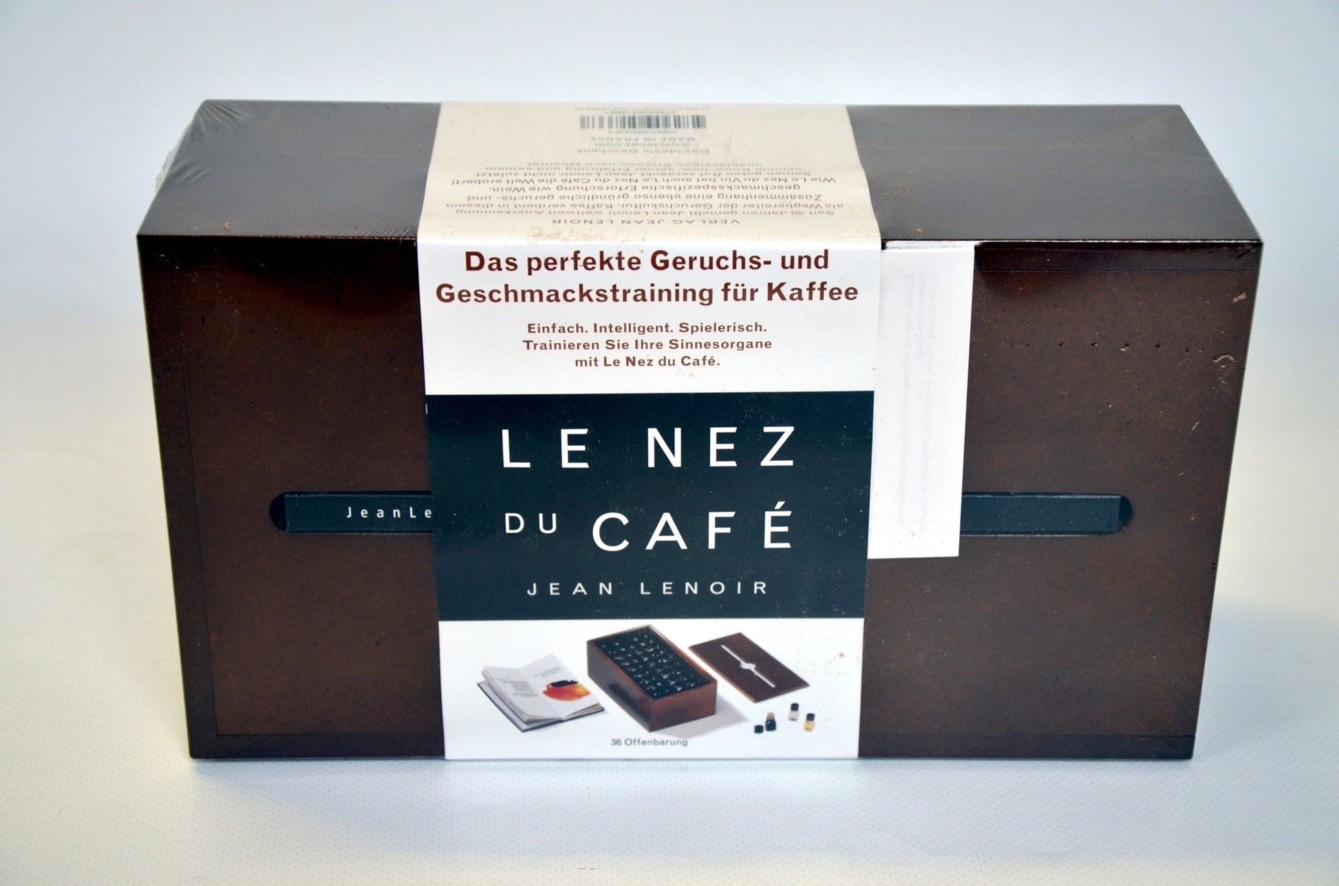Le Nez du Cafe ist das Experten-Trainingsset von Jean Lenoir. Ob im kompletten Set mit 36 oder im Anfänger-Set mit den 6 wichtigsten Aromen hilft es unglaublich beim Antrainieren von sensorischen Fähigkeiten im Kaffeebereich. Das Begleitbüchlein gibt Auskunft zu den verschiedenen Duftmerkmalen und in welchen Kaffees diese tendenziell etwa anzutreffen sind, Informationen zu Anbau und Röstung des Kaffees und zahlreiche weitere Tipps. Hergestellt in Frankreich.