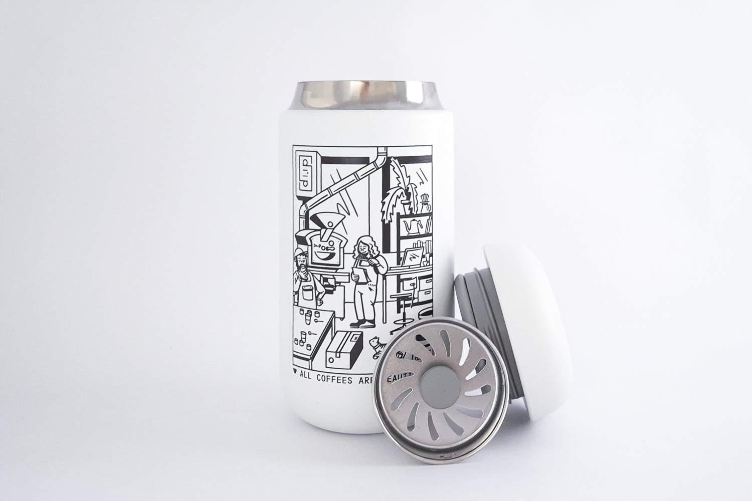 The insulated coffee mug of the make Carter Move by Fellow are practical for use on the go, sit comfortably in the hand and look incredibly cool. They also fit most cup holders in cars and other places as well as most standard drippers (not the Aeropress). The mugs keep hot beverages hot for 12 hours and cold beverages cold for 24 hours. They are the perfect choice for coffee drinkers with high quality standards in everyday life.